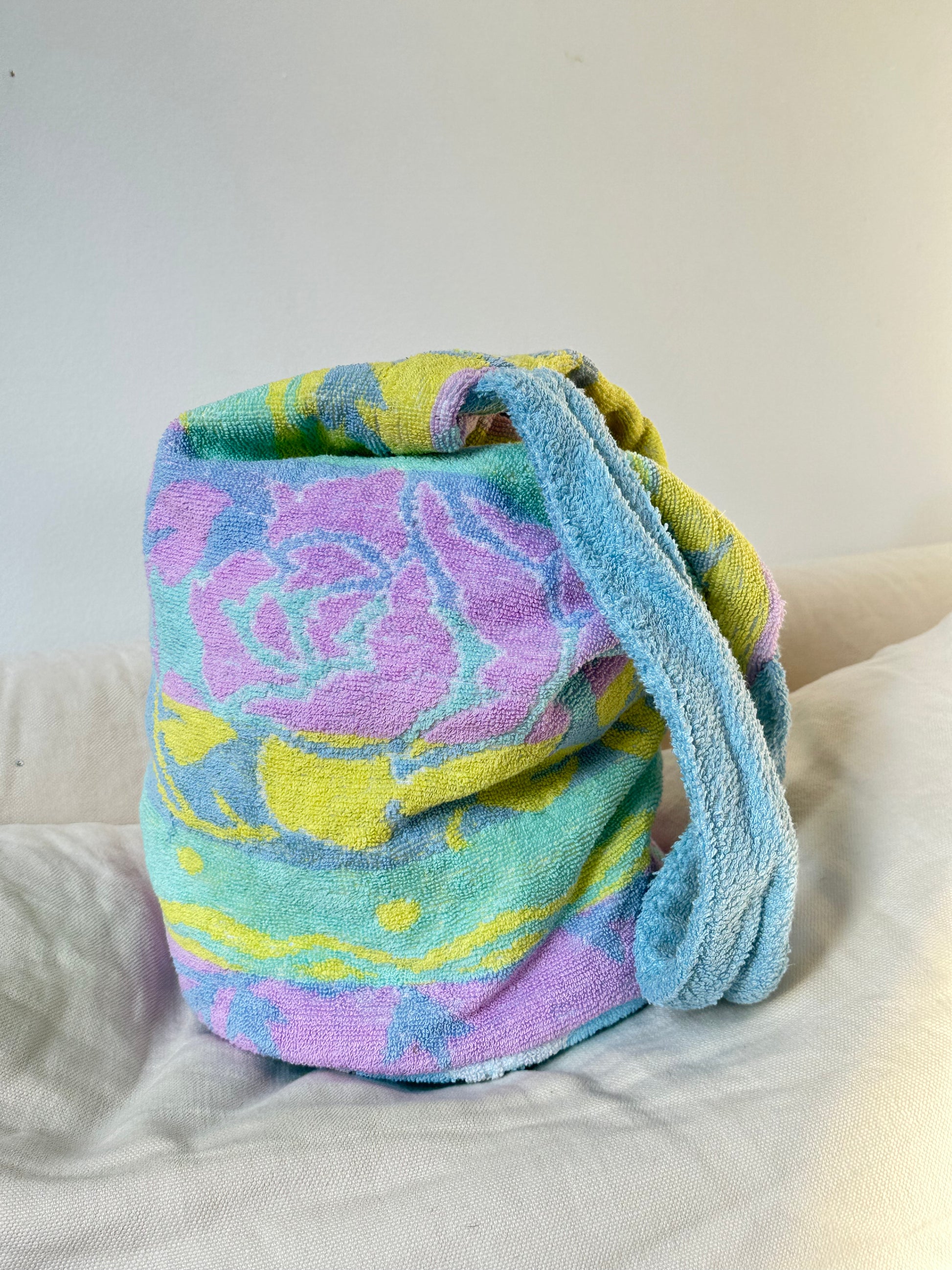 Nos Petits fiancés italiens sont des sacs sceaux en éponge recyclée chinée, lavée. Ils sont fabriqués à Paris, à la main.