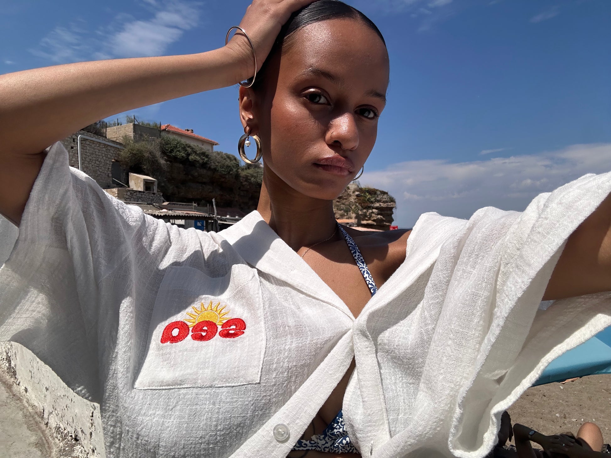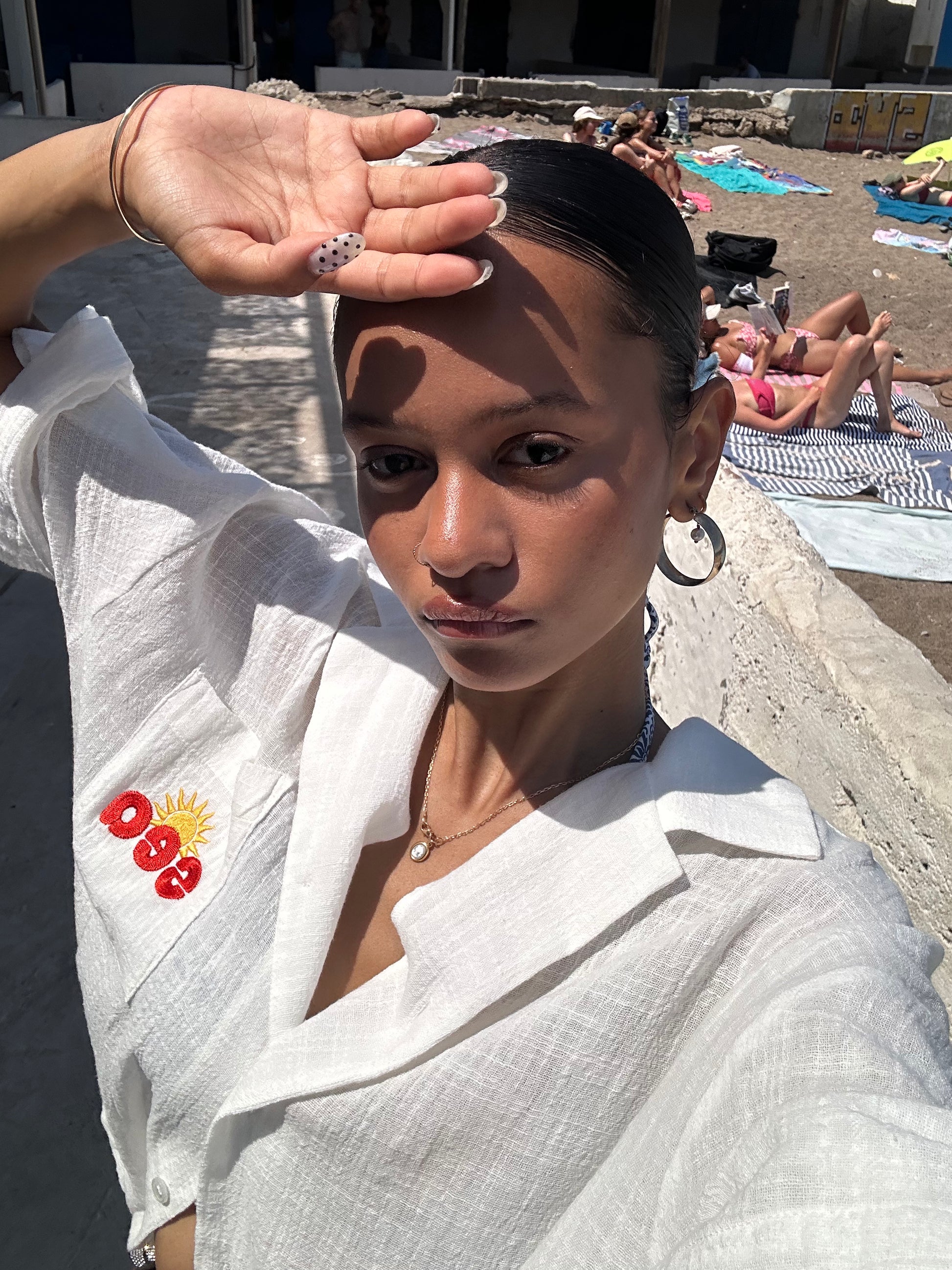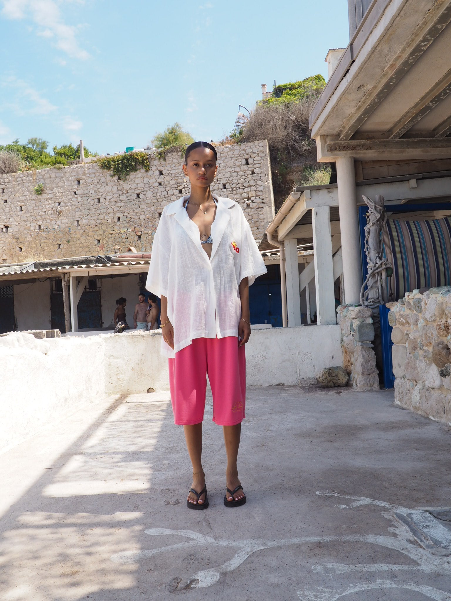 Chemise oversize en mélange de lin et de coton, broderie poitrine sea soleil