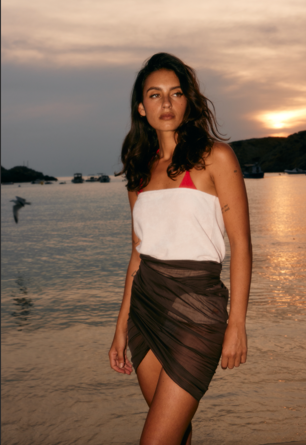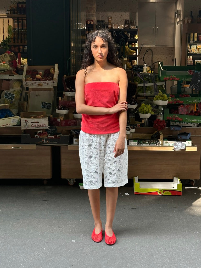 Top bustier élastiqué tissu en éponge jacquard exclusif imprimé sea soleil, 100% coton certifié oeko-Tex